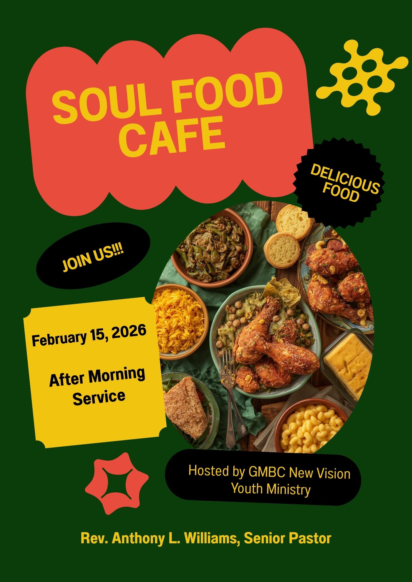This special Soul Food Sunday is hosted by GBC New Vision Youth Ministry, and you don’t want to miss it!